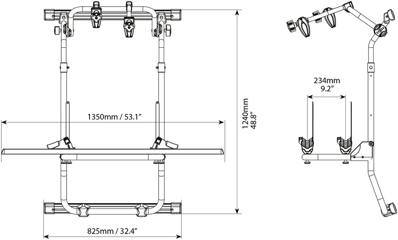- Ausgestattet mit einem Schnellmontagesystem, das kein Bohren erfordert und das Öffnen der Transportertüren auch bei montiertem Fahrradträger ermöglicht